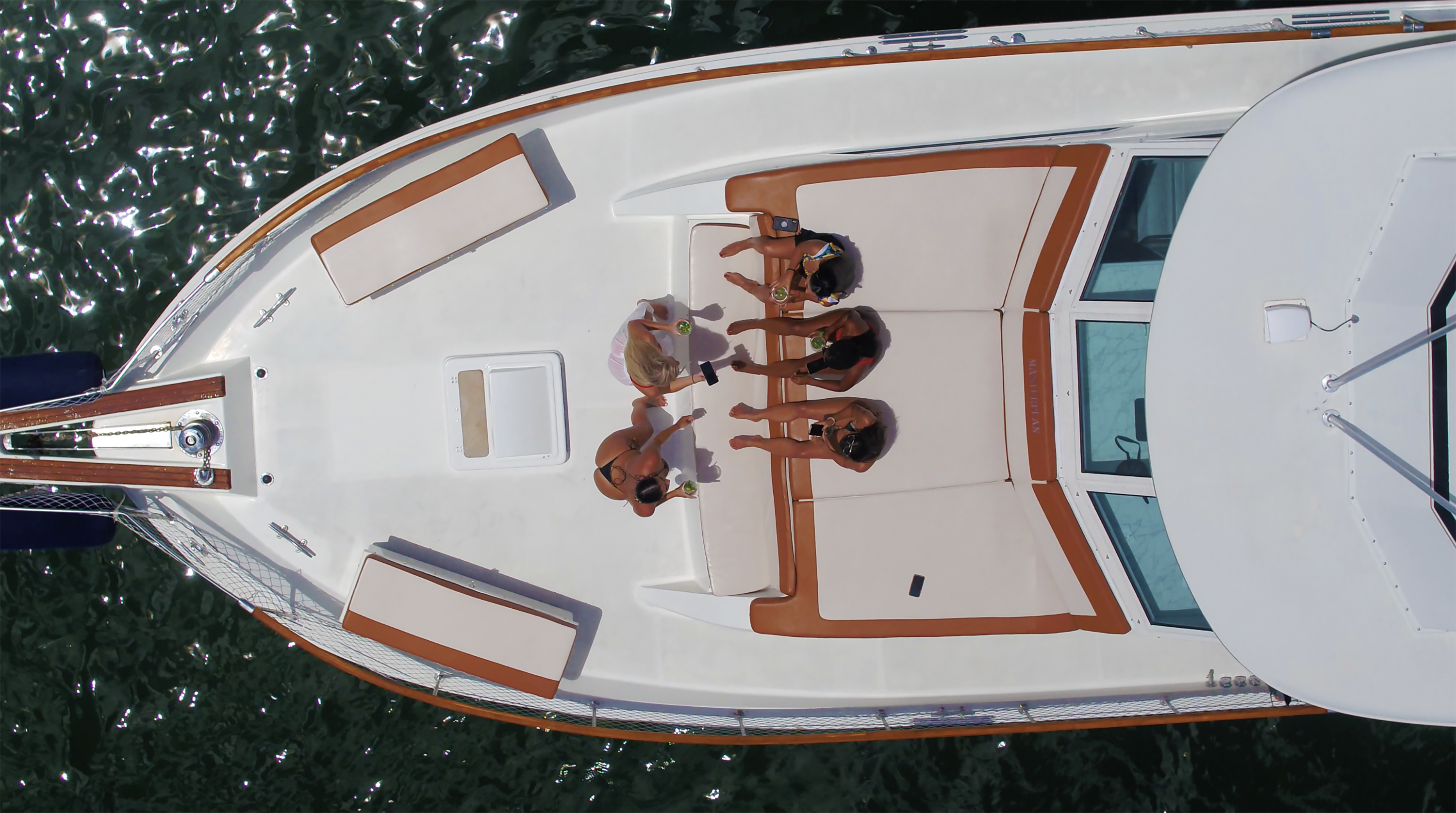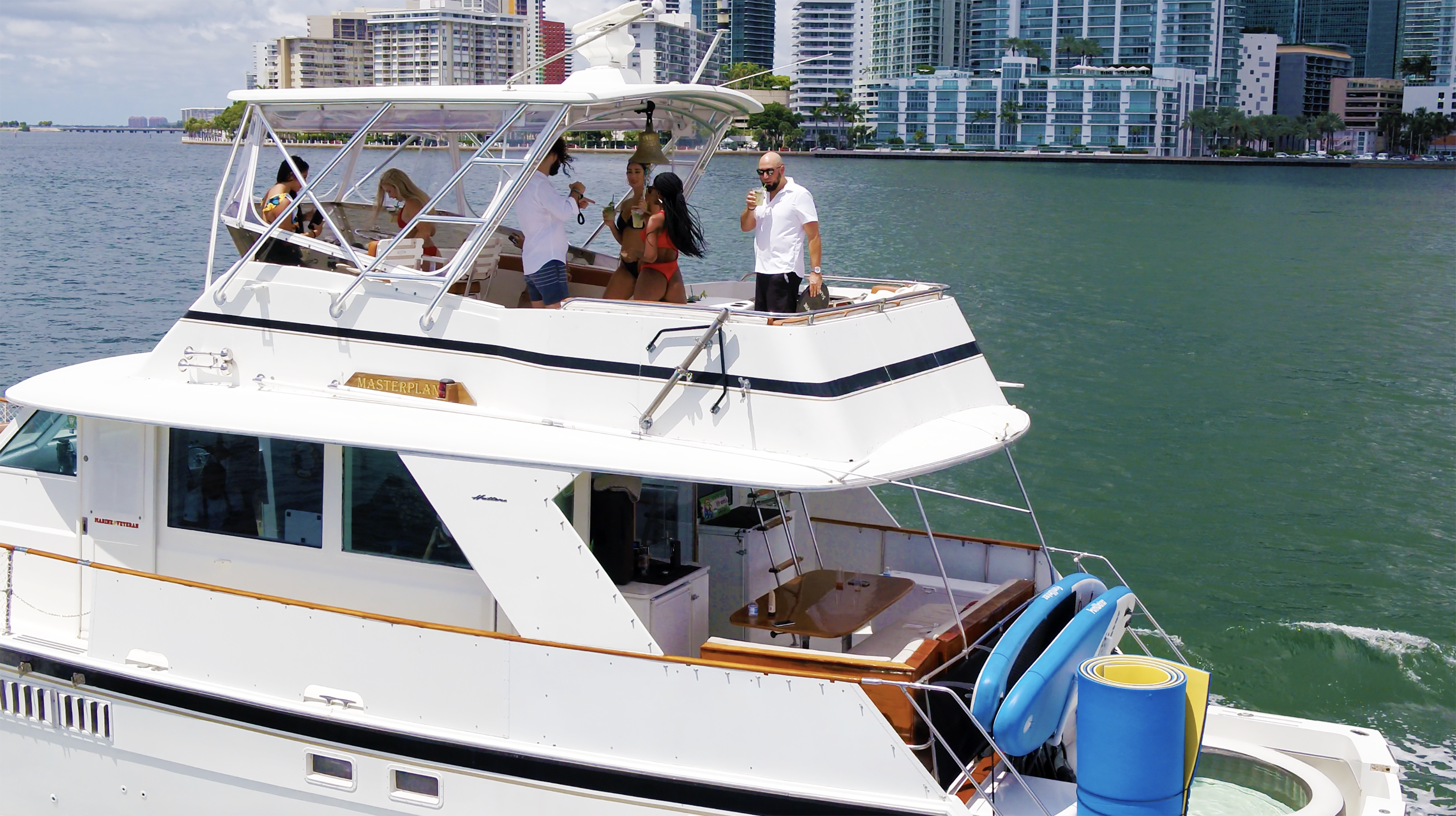 Our 60 ft yacht (MASTERPLAN) is the perfect choice for those who want a blend of classic style and modern amenities. Masterplan, a beautifully restored yacht with a classic design and modern amenities, boasts the "Biggest Bow in the Biz" and was voted "Best Bachelorette Yacht Party in Cape Coral, 2024."
