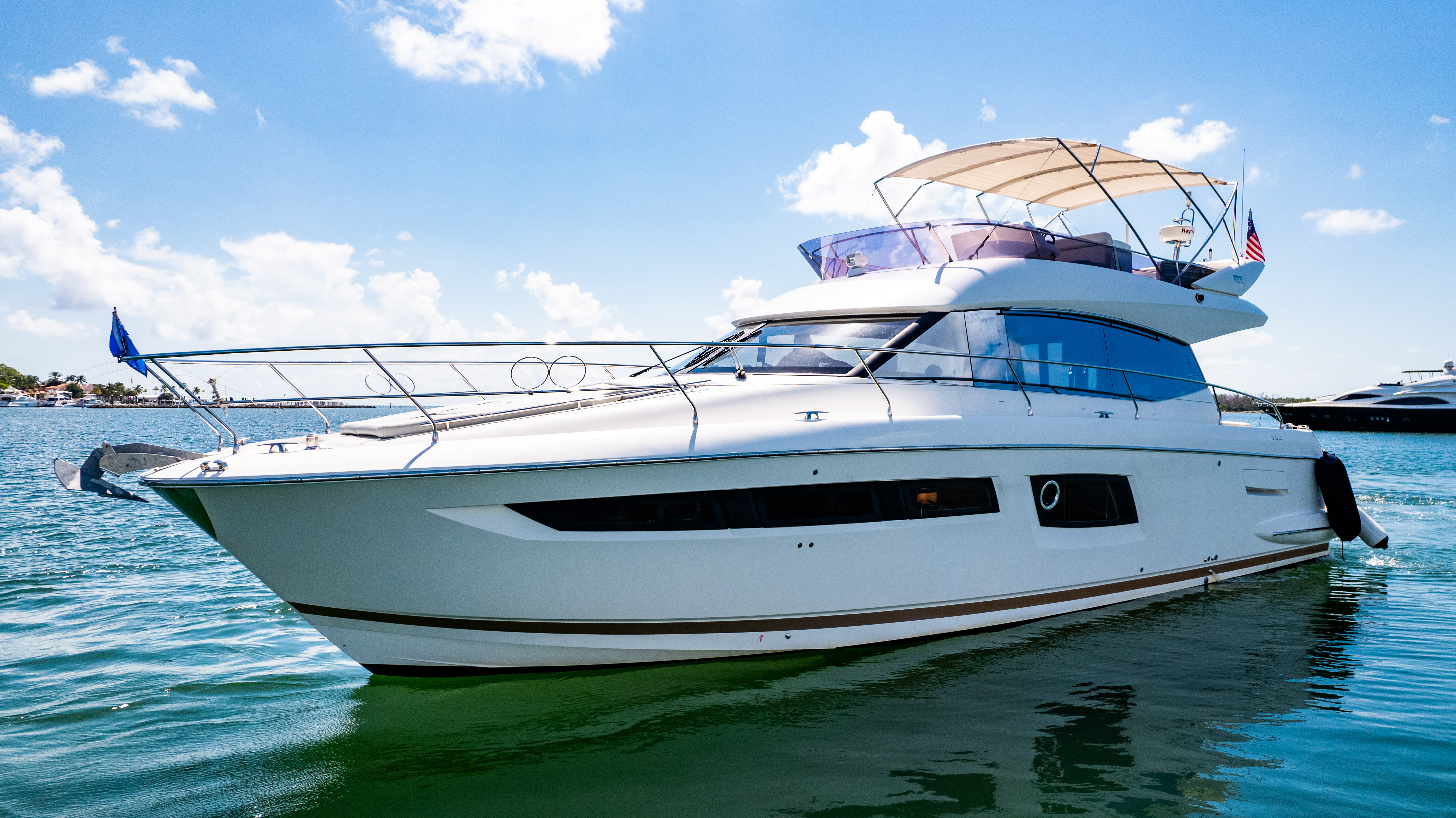 Cruise through the stunning Biscayne Bay, where you can anchor at exclusive spots like Star Island or Nixon Sandbar. Explore the vibrant Miami skyline from the water or venture further to the serene waters of Key Biscayne. The yacht’s size makes it versatile for both short day trips and longer excursions, ensuring an unforgettable maritime adventure.